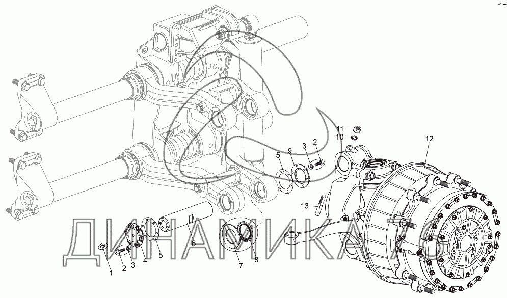 Схемы запчастей предназначены для справочных целей! Мы продаем не все запчасти от Установка передней ступицы на МЗКТ-7930-200, представленные в этом списке.
