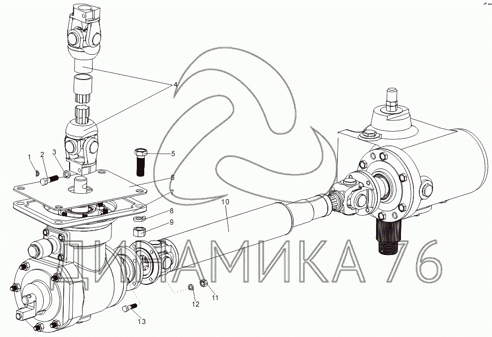 Перечень комплектующих от Установка редуктора руля на МЗКТ-7930-200