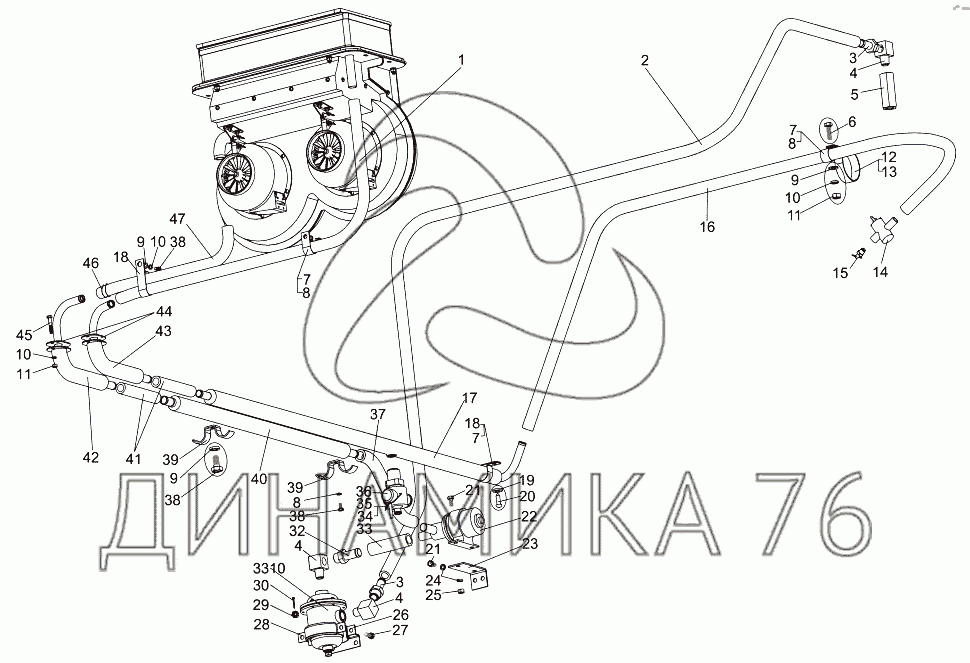 Перечень комплектующих от Установка трубопроводов отопителей кабин на МЗКТ-7930-200