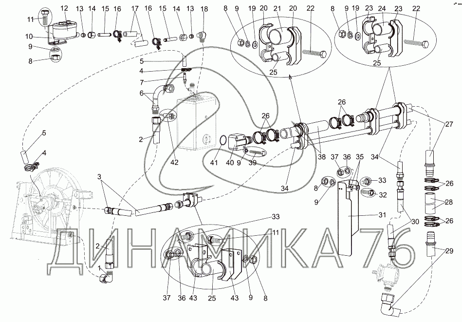 Перечень комплектующих от Установка трубопроводов силовых магистралей на МЗКТ-7930-200