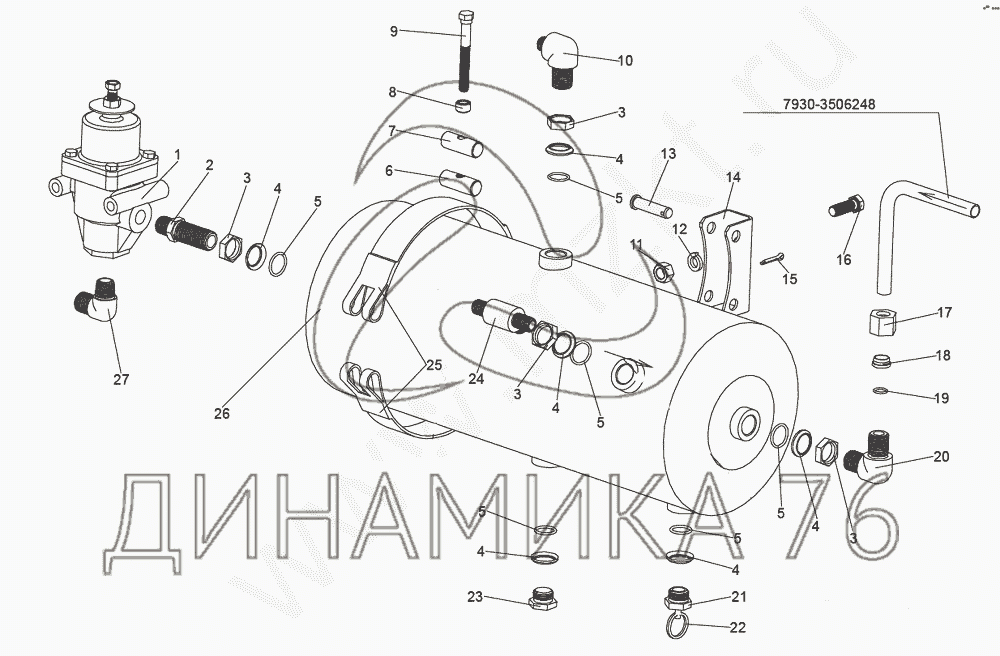 Схемы запчастей предназначены для справочных целей! Мы продаем не все запчасти от Установка воздушного баллона потребителей на МЗКТ-7930-200, представленные в этом списке.