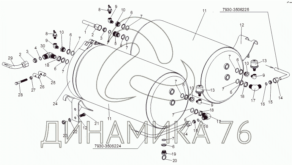Схемы запчастей предназначены для справочных целей! Мы продаем не все запчасти от Установка воздушных баллонов на МЗКТ-7930-200, представленные в этом списке.