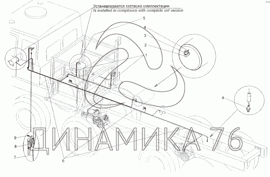 Жгуты проводов по правому лонжерону на МЗКТ-93782 (до 2010 г.)