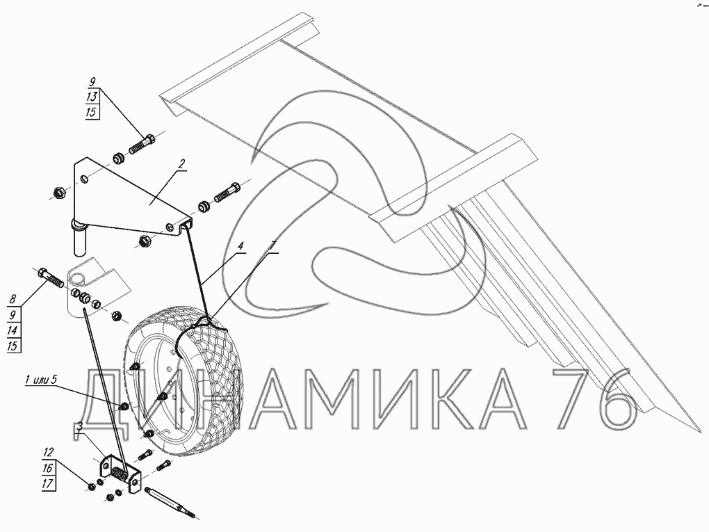Перечень комплектующих от Установка запасного колеса на НефАЗ-6520, 6522