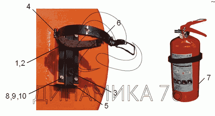 9674-3910165 Установка огнетушителя на НефАЗ-6606 (до 2008 г.)