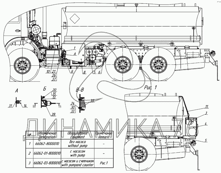 Перечень комплектующих от Установка технологического оборудования на НефАЗ-6606