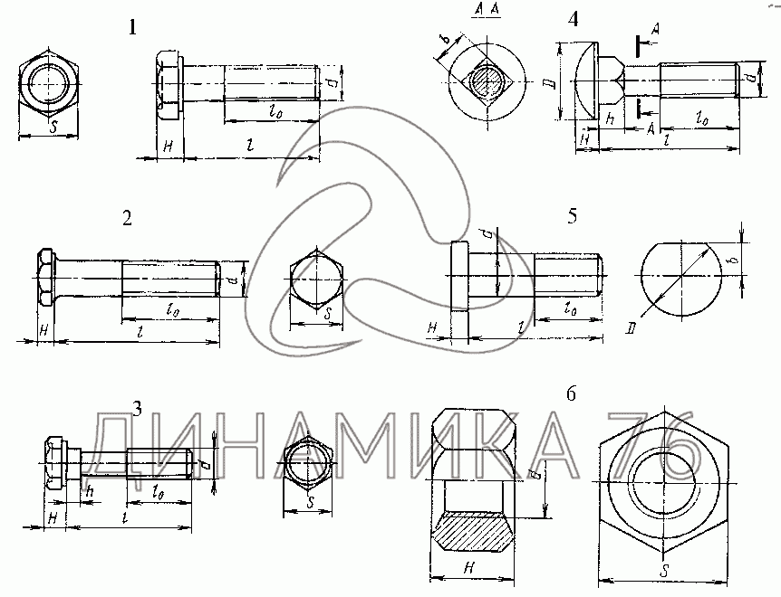 Болт (d=8x1,25, l=20, l0=20, H=5, D=13,8, S=12)