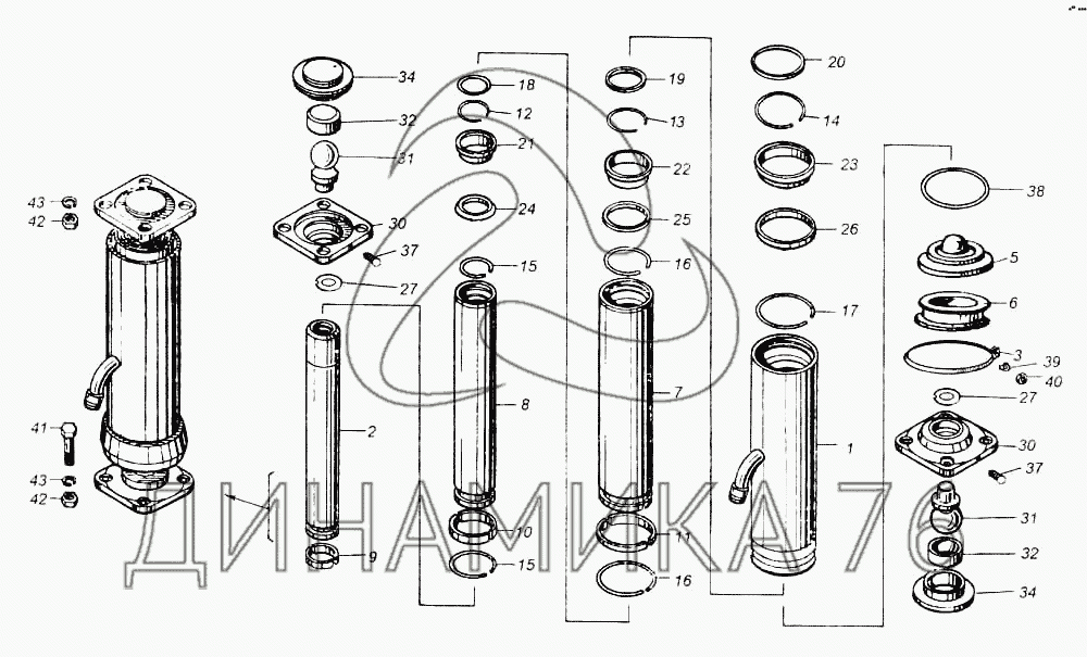 Перечень комплектующих от Гидроцилиндр 8560-8603010 на НефАЗ-8560
