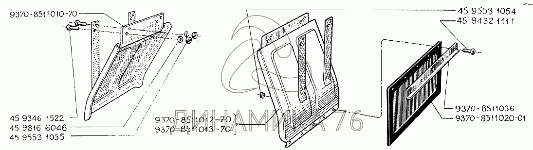 Перечень комплектующих от Брызговики платформы на НефАЗ-9385/07