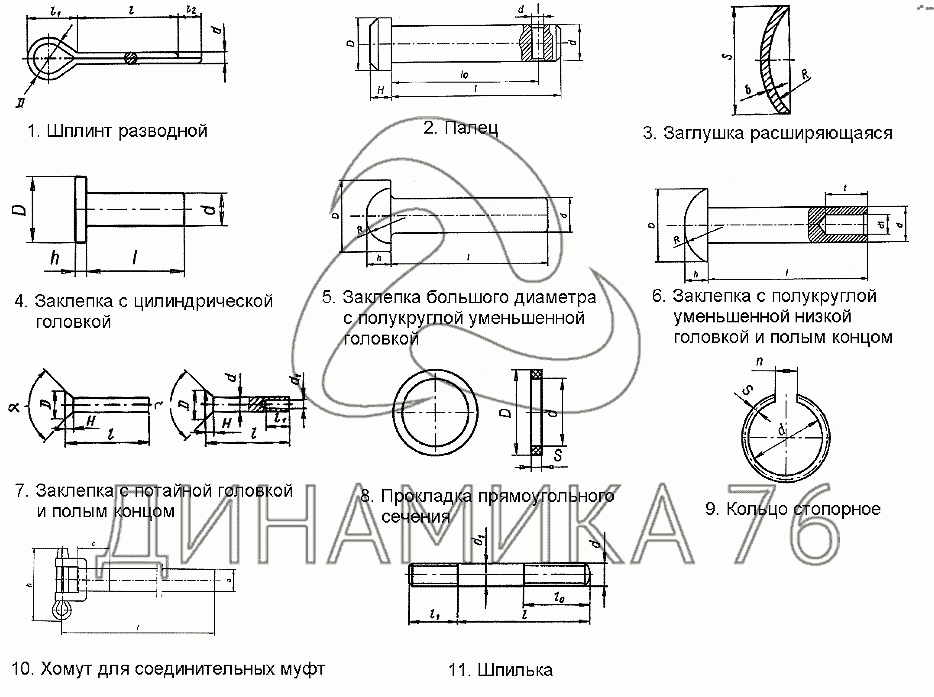 Заклепка большого диаметра с полукруглой уменьшенной головкой (d=12, D=19, l=32, h=7,2, R=9,8)