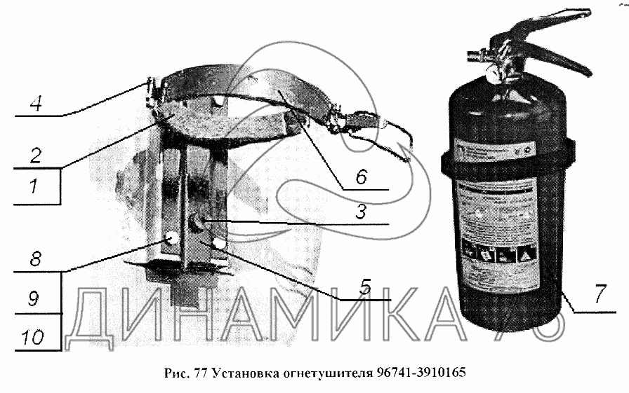 Установка огнетушителя 96741-3910165 — НефАЗ-96741:
