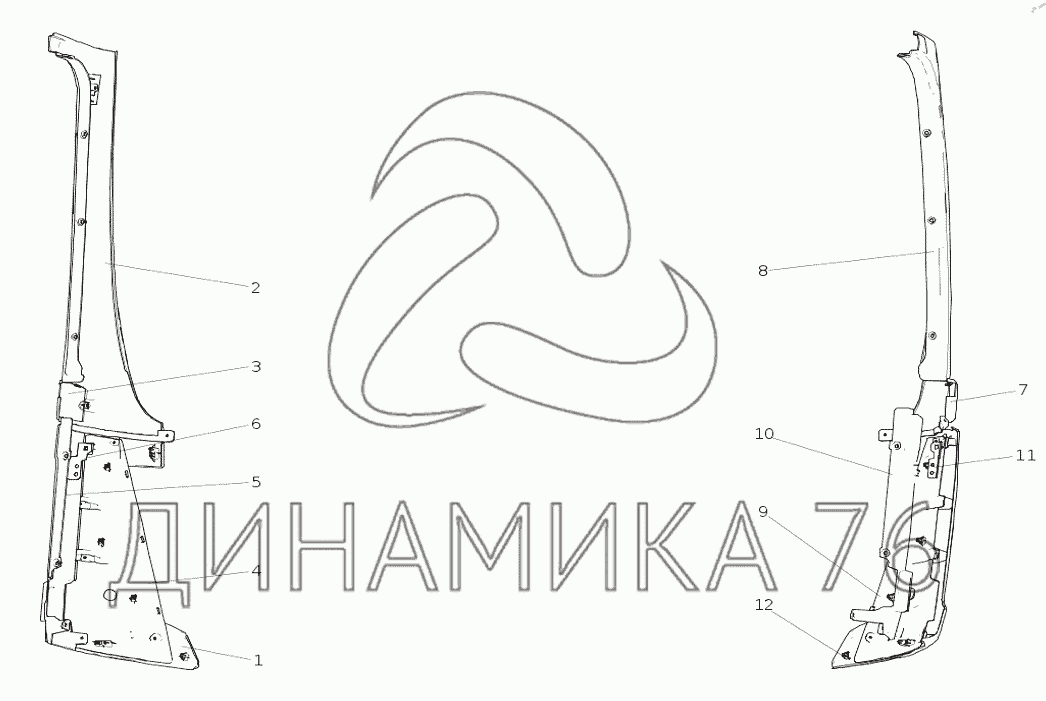 AC16D11-000001 Декоративная панель А-стойки кабины (Высокий верх) — SITRAK C7H MAX 4X2: