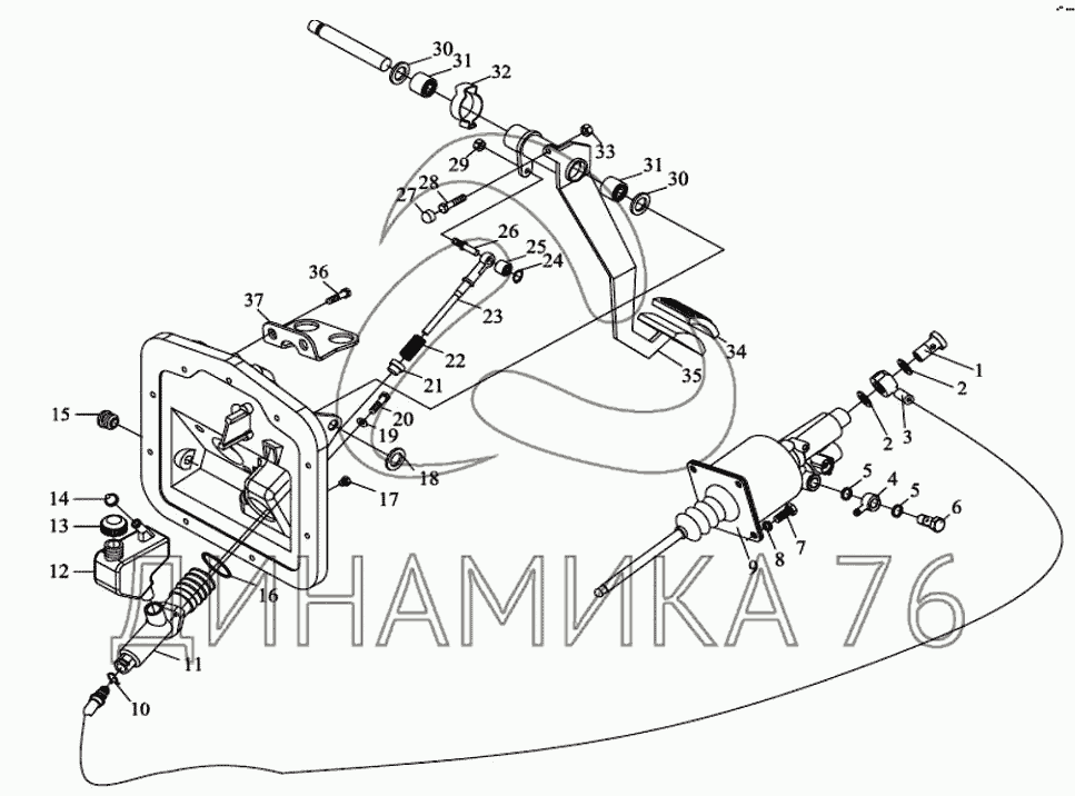 Перечень комплектующих от Механизм привода сцепления на Тонар-6428