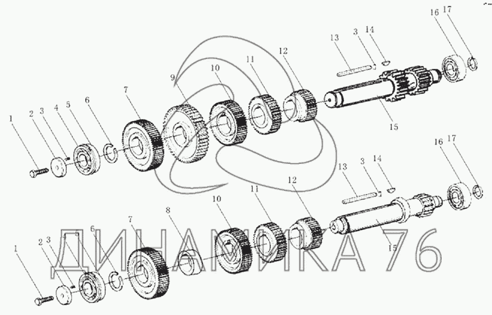 Перечень комплектующих от Промежуточный вал в сборе на Тонар-6428
