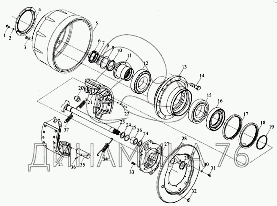 Перечень комплектующих от Тормоз заднего колеса на Тонар-6428