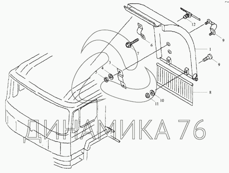 Перечень комплектующих от Заднее крыло кабины правое на Тонар-6428