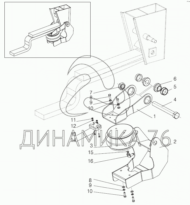 Перечень комплектующих от Механизм подъема оси на Тонар-9523