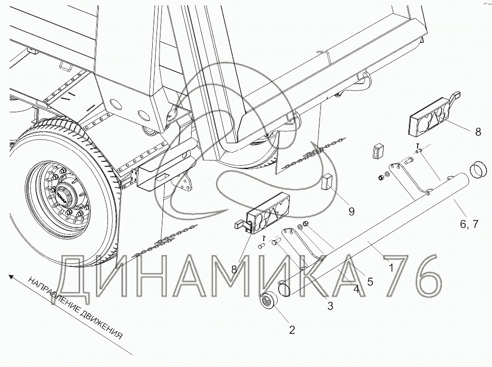 Схемы запчастей предназначены для справочных целей! Мы продаем не все запчасти от Установка заднего защитного устройства на Тонар-9523 (вариант), представленные в этом списке.