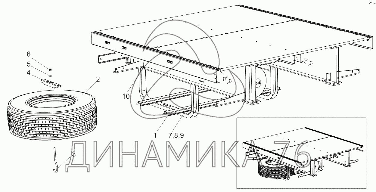 Схемы запчастей предназначены для справочных целей! Мы продаем не все запчасти от Установка запасного колеса на Тонар-97461, представленные в этом списке.