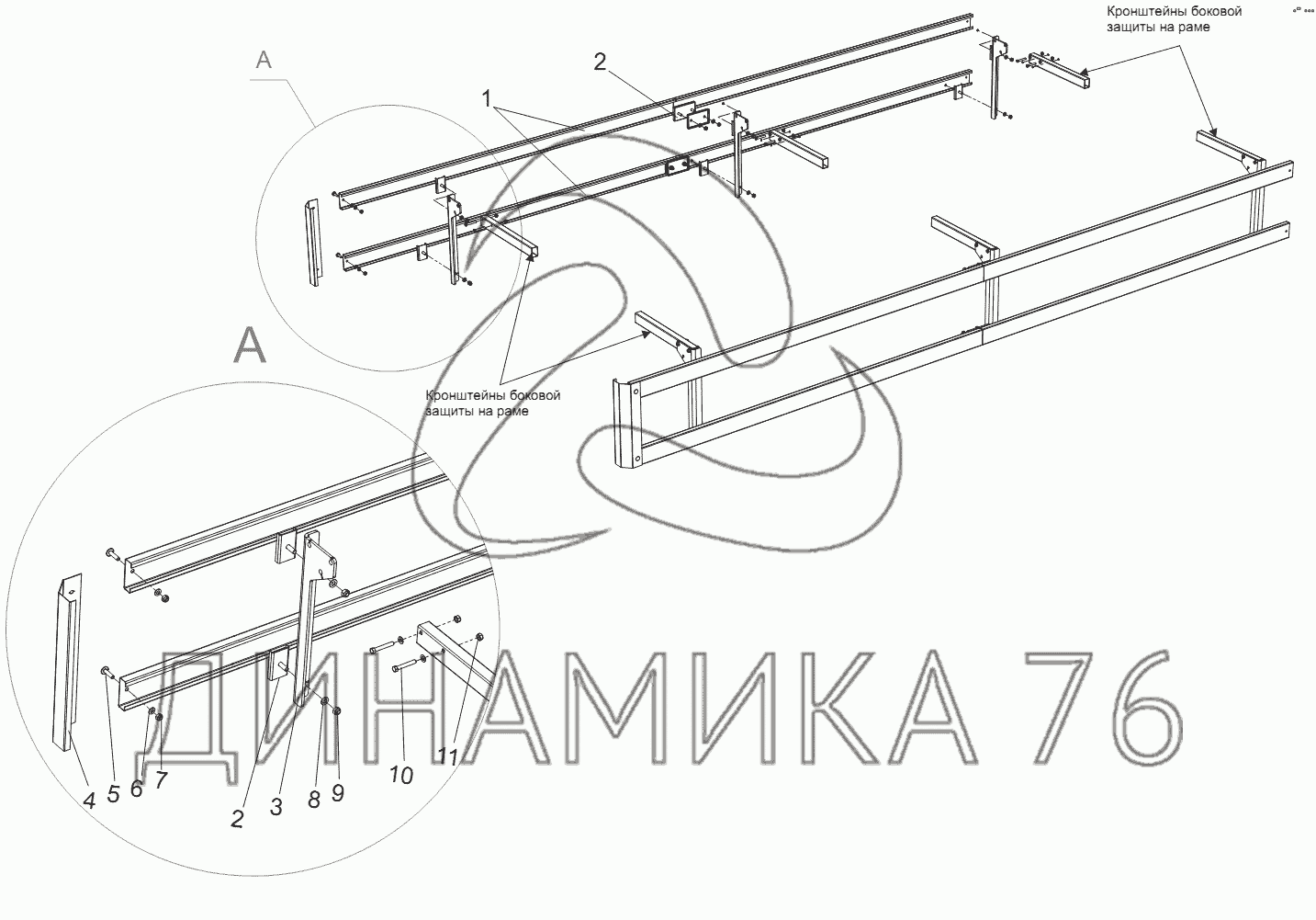 Перечень комплектующих от Боковое защитное устройство модели 97461Д на Тонар-9746