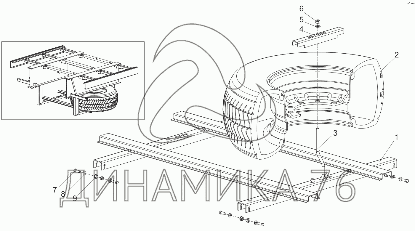 Перечень комплектующих от Установка запасного колеса 9746-3105500 на Тонар-9746