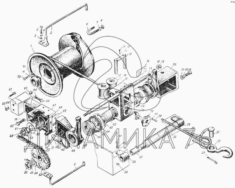 Перечень комплектующих от Тросоукладчик лебедки (Рис. 132) на УРАЛ-375