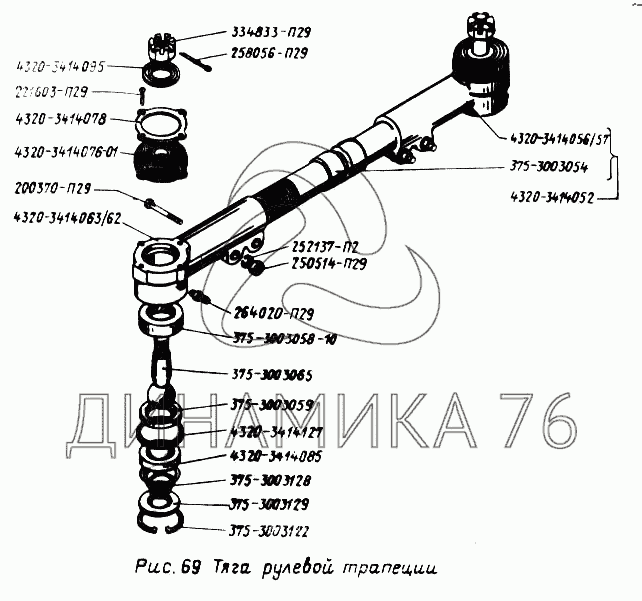 Перечень комплектующих от Тяга рулевой трапеции на УРАЛ-43202