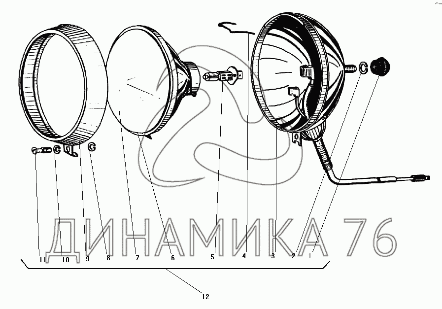 Перечень комплектующих от Фара-прожектор на УРАЛ-43203-10