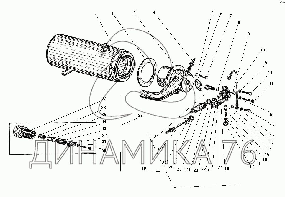 Перечень комплектующих от Котел (теплообменник) предпускового подогревателя на УРАЛ-43203-10