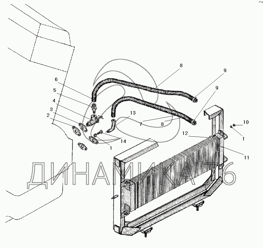 Перечень комплектующих от Масляный радиатор на УРАЛ-43203-10