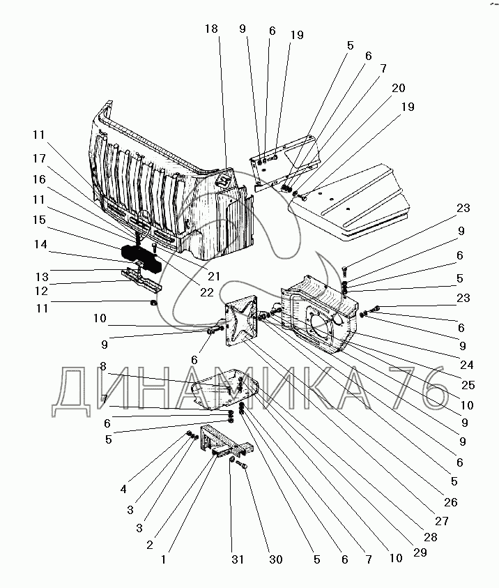 Перечень комплектующих от Облицовка радиатора на УРАЛ-43203-10
