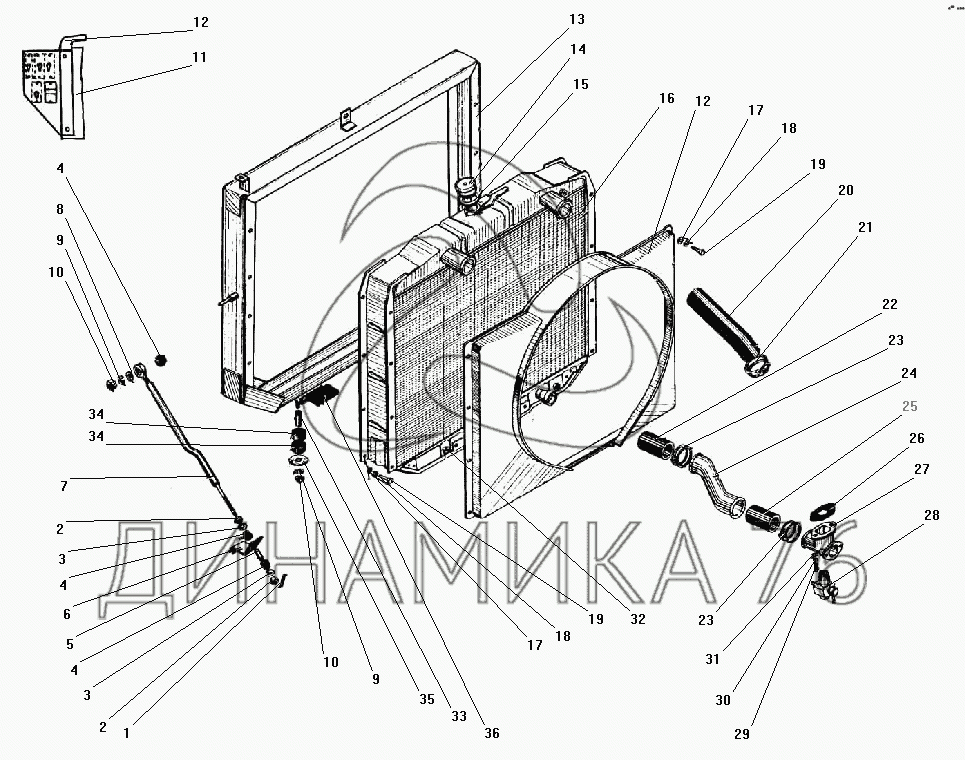 Схемы запчастей предназначены для справочных целей! Мы продаем не все запчасти от Радиатор системы охлаждения на УРАЛ-43203-10, представленные в этом списке.