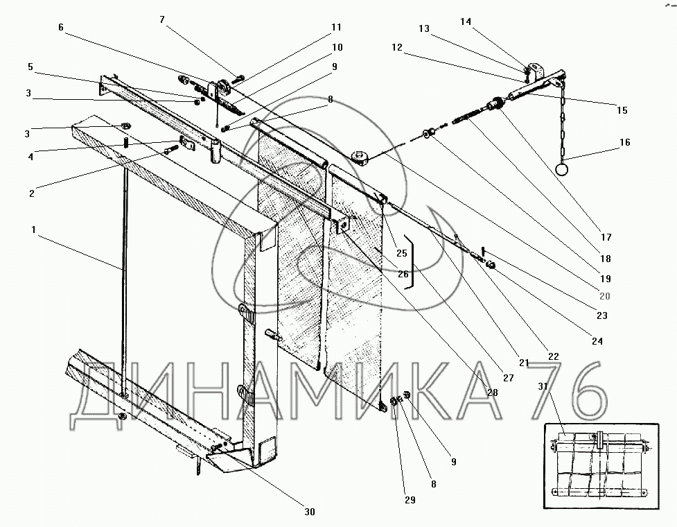 Перечень комплектующих от Штора радиатора на УРАЛ-43203-10