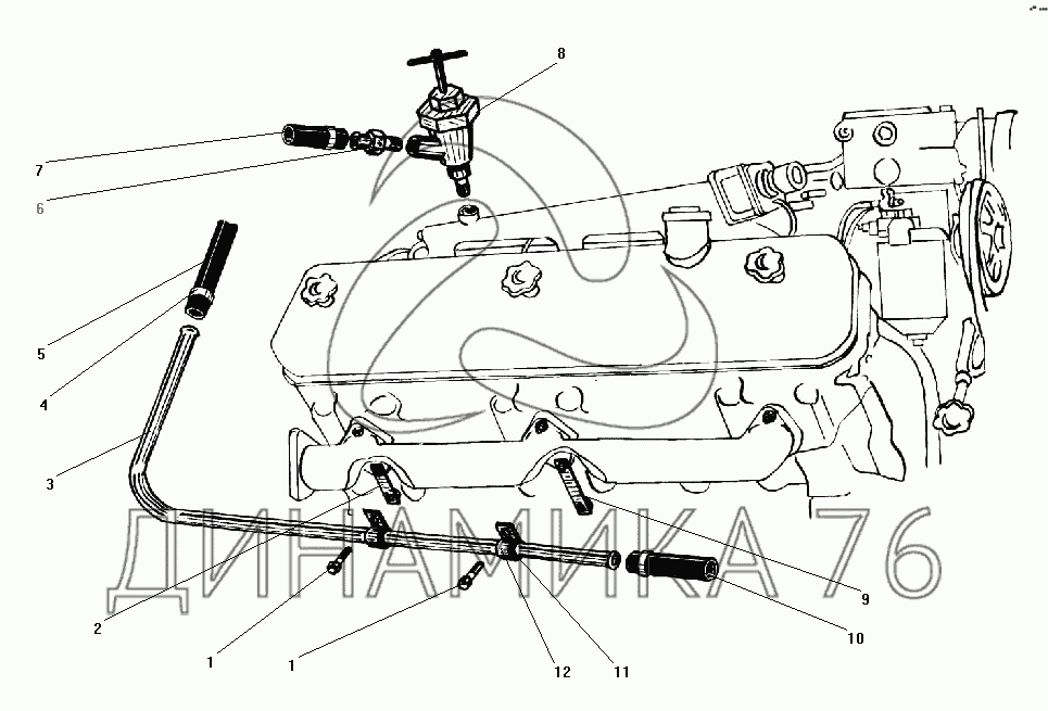 Перечень комплектующих от Трубопроводы системы отопления кабины на УРАЛ-43203-10