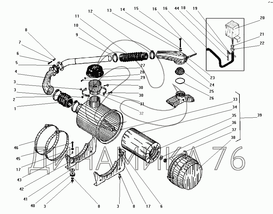 Перечень комплектующих от Воздухопровод с воздушным фильтром на УРАЛ-43203-10