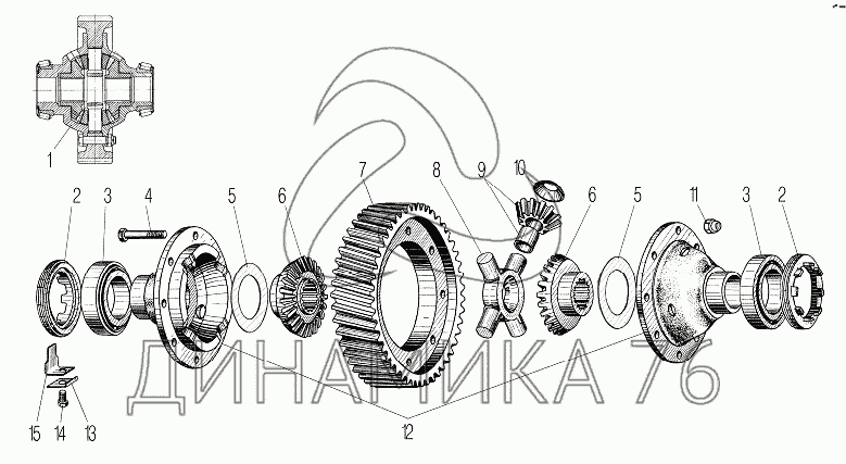 Перечень комплектующих от Дифференциал переднего моста на УРАЛ-43204-1153-70