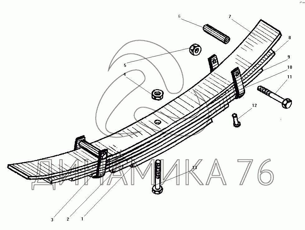 Перечень комплектующих от Дополнительная рессора на УРАЛ-43206-41