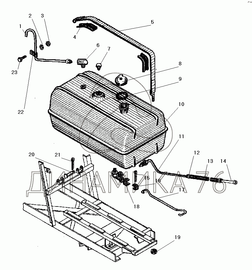 Схемы запчастей предназначены для справочных целей! Мы продаем не все запчасти от Дополнительный топливный бак на УРАЛ-43206-41, представленные в этом списке.