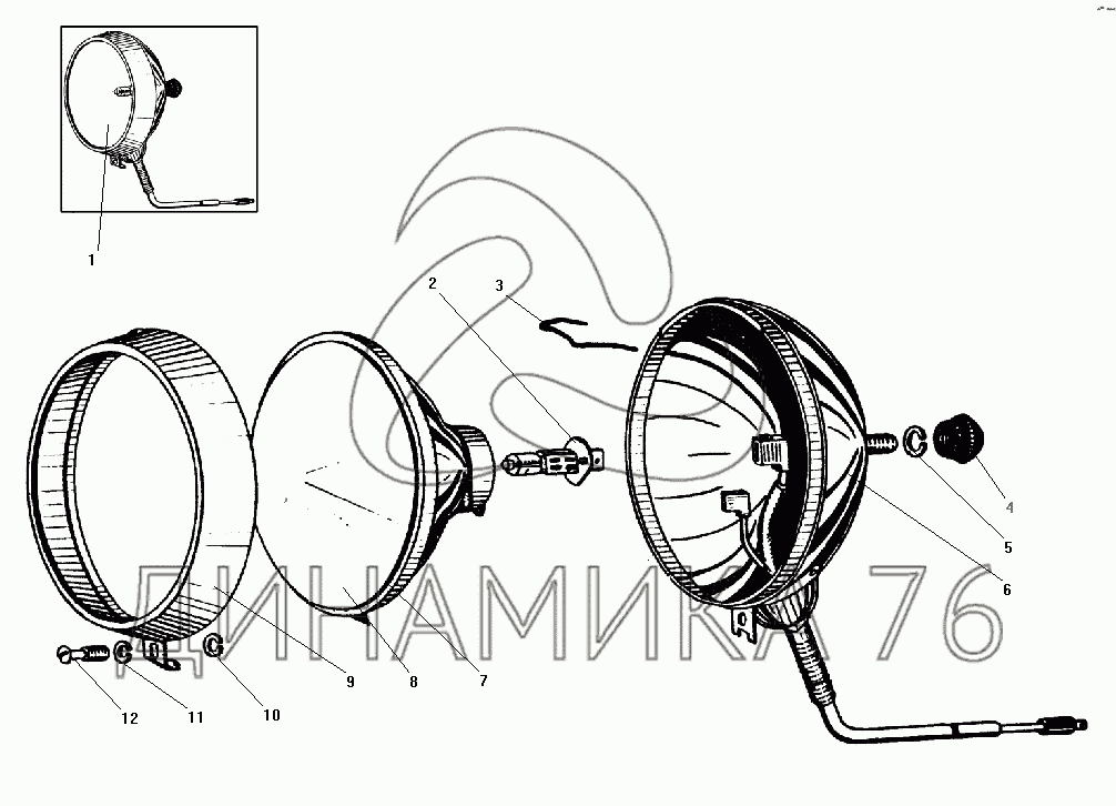 Перечень комплектующих от Фара-прожектор на УРАЛ-43206-41