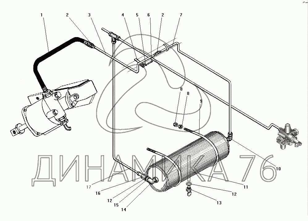 Перечень комплектующих от Пневмопривод выключения сцепления на УРАЛ-43206-41
