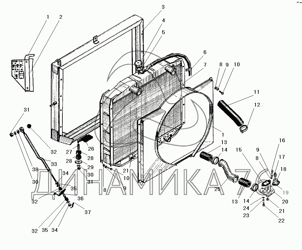 Схемы запчастей предназначены для справочных целей! Мы продаем не все запчасти от Радиатор системы охлаждения на УРАЛ-43206-41, представленные в этом списке.