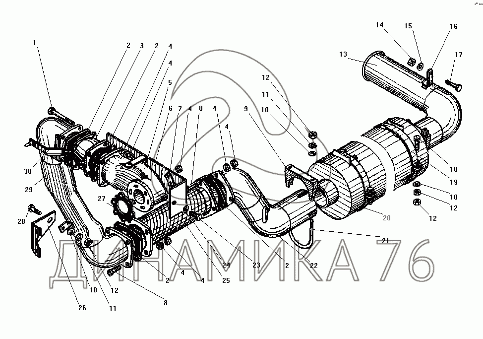 Перечень комплектующих от Система выпуска газов на УРАЛ-43206-41