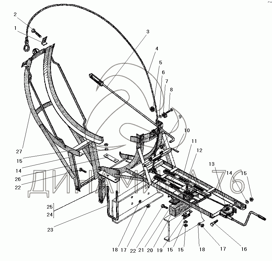 Перечень комплектующих от Вертикальный держатель запасного колеса на УРАЛ-43206-41