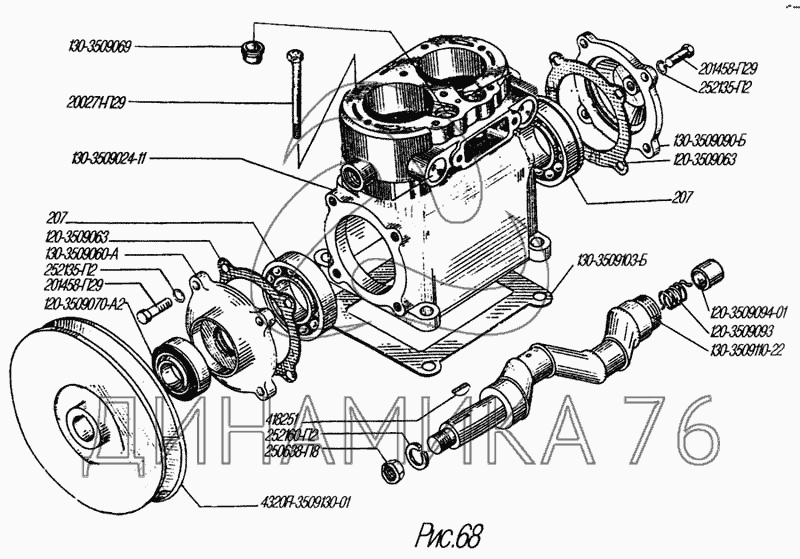 Перечень комплектующих от Блок-картер компрессора на УРАЛ-4320-31