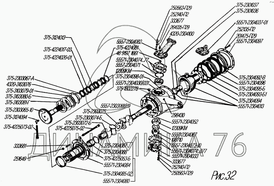Перечень комплектующих от Передний мост на УРАЛ-4320-31
