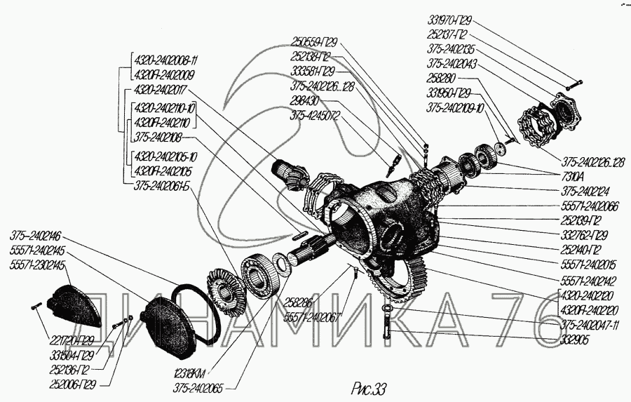 Перечень комплектующих от Редуктор главной передачи на УРАЛ-4320-31