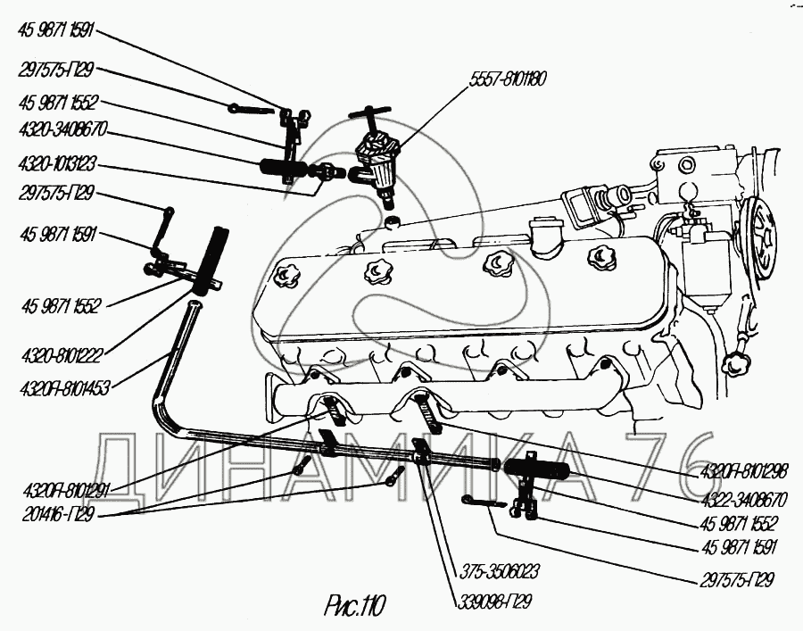 Перечень комплектующих от Трубопроводы системы отопления кабины на УРАЛ-4320-31