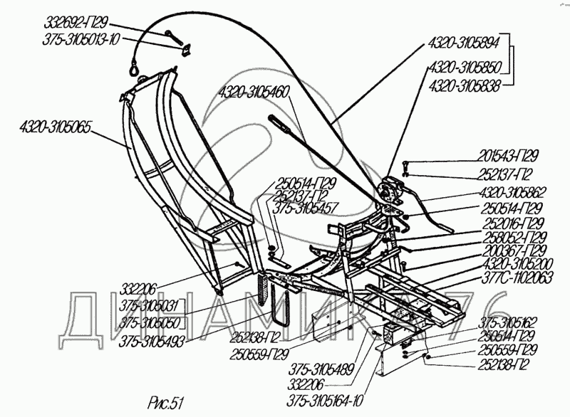 Схемы запчастей предназначены для справочных целей! Мы продаем не все запчасти от Вертикальный держатель запасного колеса на УРАЛ-4320-31, представленные в этом списке.