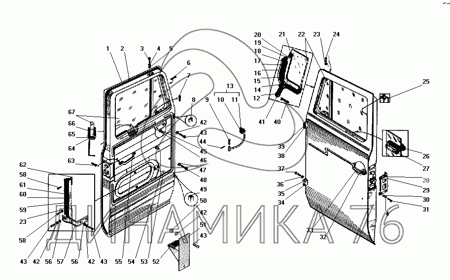 Перечень комплектующих от Двери кабины на УРАЛ-4320-31
