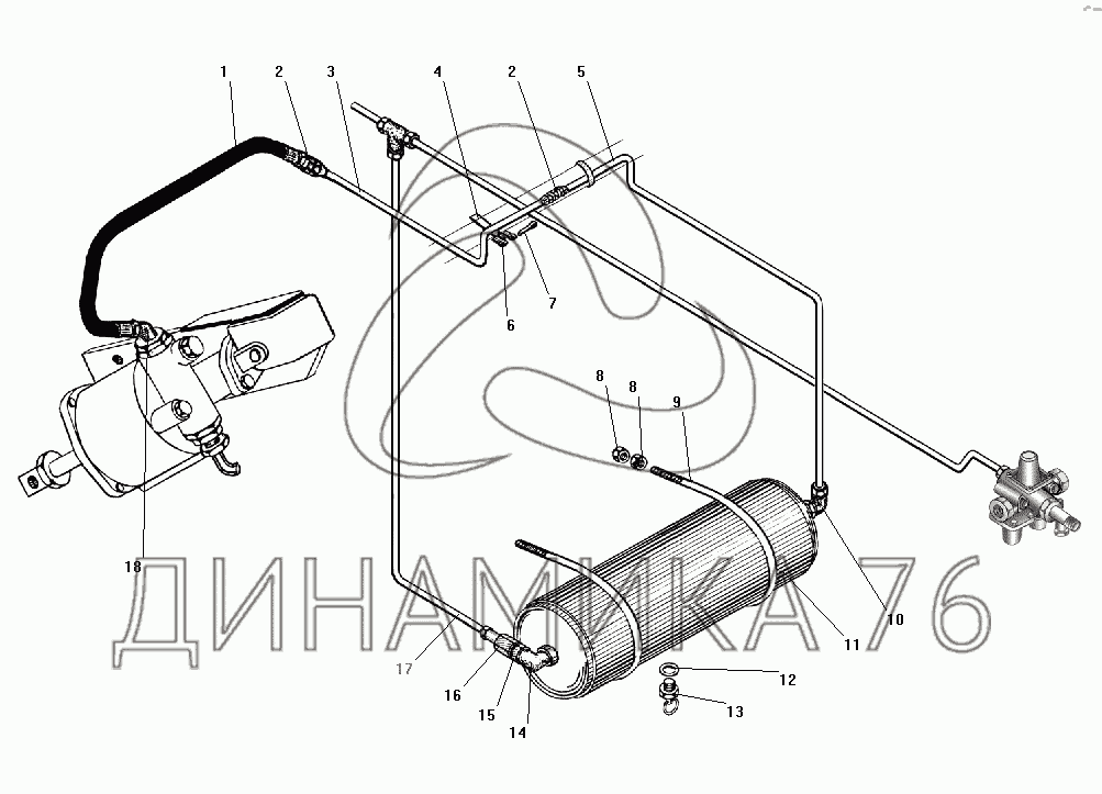 Перечень комплектующих от Пневмопривод выключения сцепления на УРАЛ-4320-31